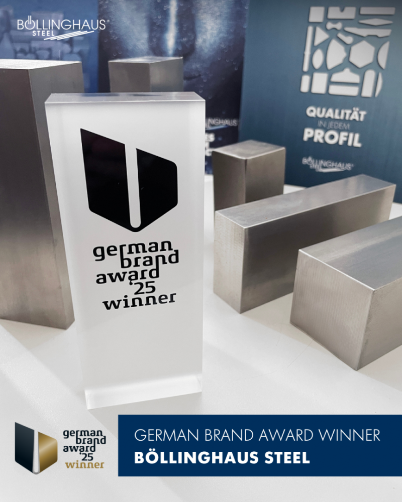 We are very proud to announce: Böllinghaus Steel was honored as Winner of the German Brand Award 2025 in the category “Excellence in Brand Strategy and Creation - Brand Communication - Fairs & Exhibitions”! Our trade fair appearance at Wire 2024 under the title “135 years of Böllinghaus Steel: Tradition meets innovation - Welcome home” was honored.
